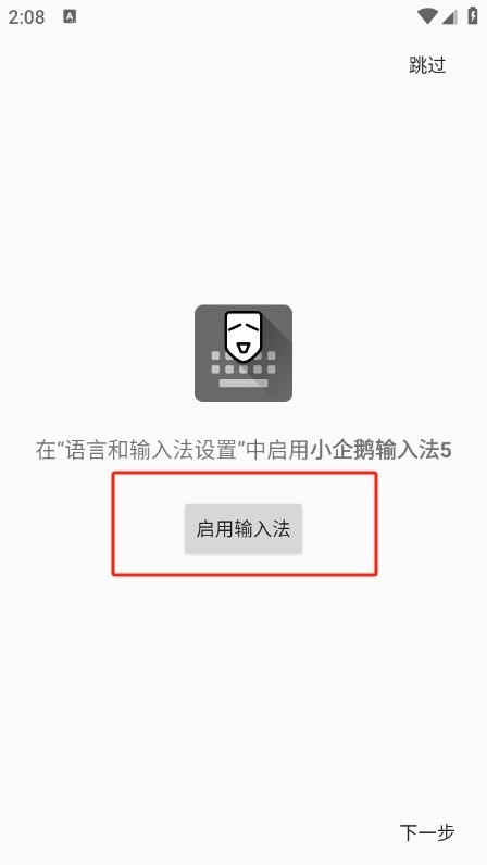 3、然后跳过,您可以看到小企鹅输入法5的功能主页