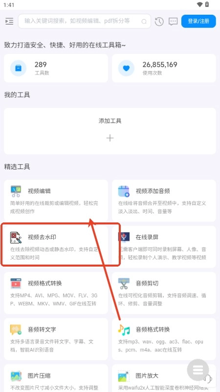 3、有很多的工具分类,图片工具、视频工具以及办公类等。