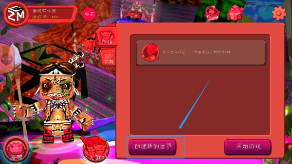 2、选择游戏模式,为新世界命名,点击开始游戏
