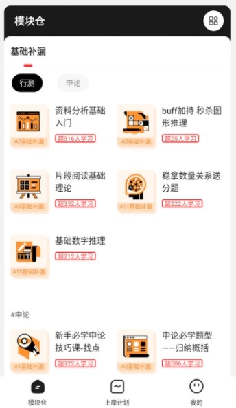 上岸仓不仅拥有刷题功能,还配备了智能评估功能。借助考生的答题状况,它能够智能化地剖析考生的薄弱之处,进而给出具有针对性的学习建议以及复习计划。