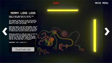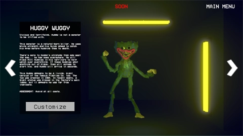 工厂中潜伏着由孤儿和员工改造而成的怪物,如Huggy Wuggy、Mommy Long Legs等。玩家需要利用环境和道具躲避它们的追击。