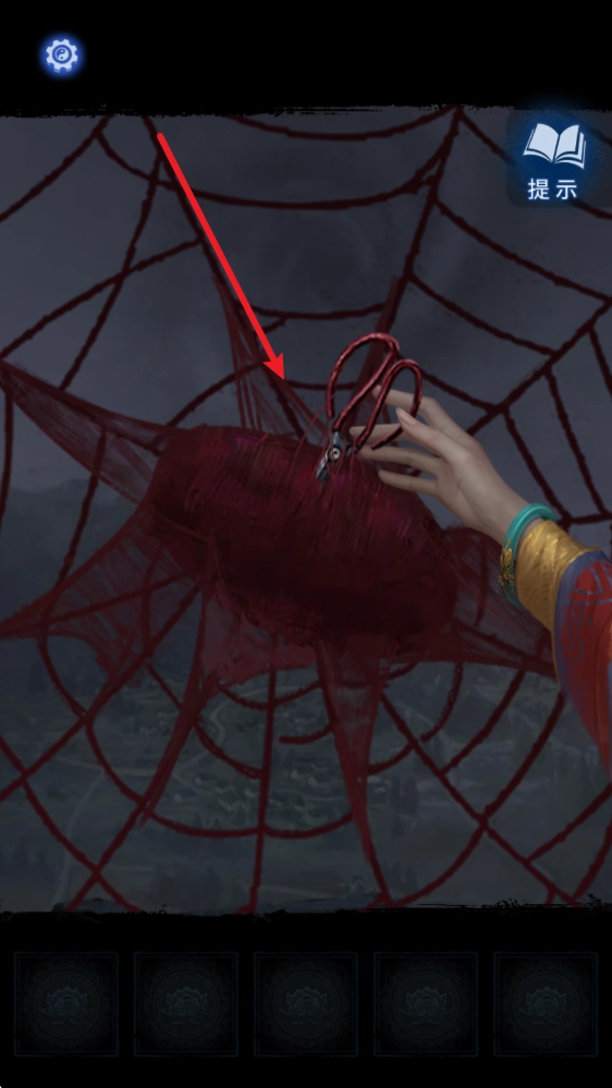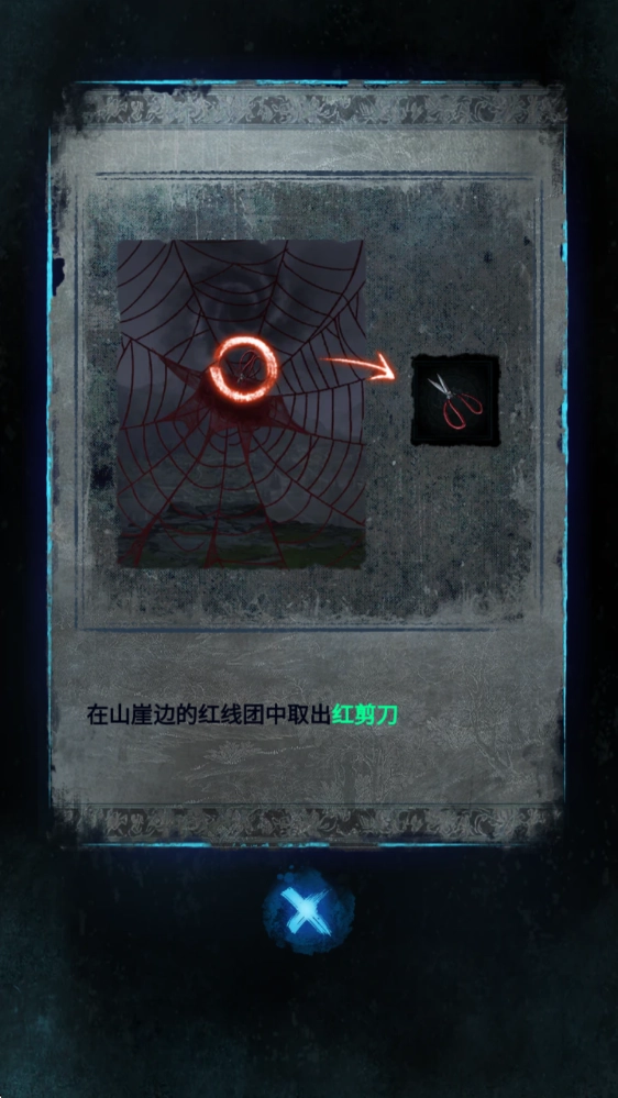 7、在六礼轩两个纸人架住的箱子上使用剪刀,获得半截尺子,奉弉祠奘尊雕像的右侧使用剪刀,触发小游戏,完成小游戏后。获得三炷香,完整的尺子,进入地图尺子消失,解锁新地点称骨斋。