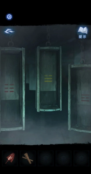 10、进入送喜阁,点击正上方的棺材,将长命锁挂在最右侧棺材的钉子上面,获得线索,点击右侧的架子完成小游戏后,盖头给他。获得木梳回到纸人庙后将木梳给纸新娘。获得骨币。