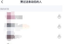 3、随机找一条动态,看到下面的点赞的好友,点击旁边的拇指标记。