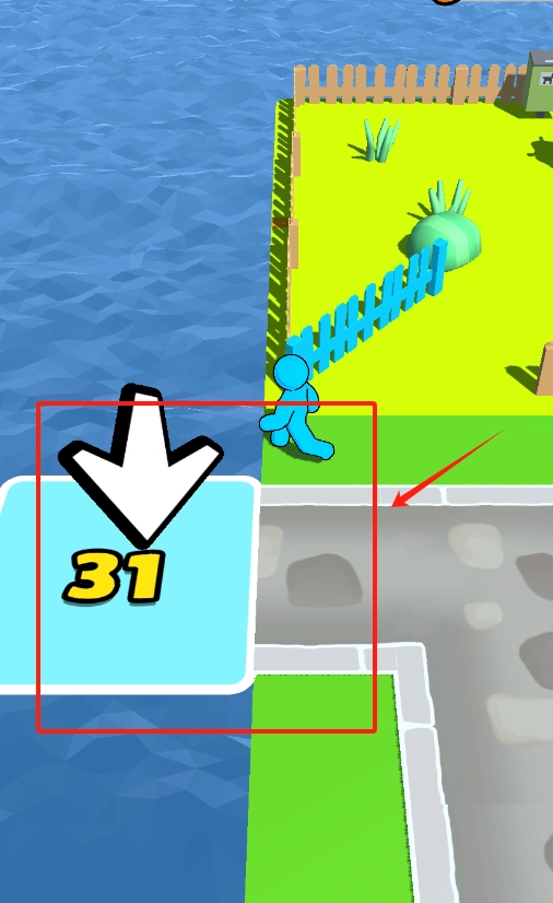 2、左侧水域边有个带箭头的蓝色方块,方块上标着数字31,直接点那个蓝色方块,可能是触发某种与数字相关的操作或收集物品。