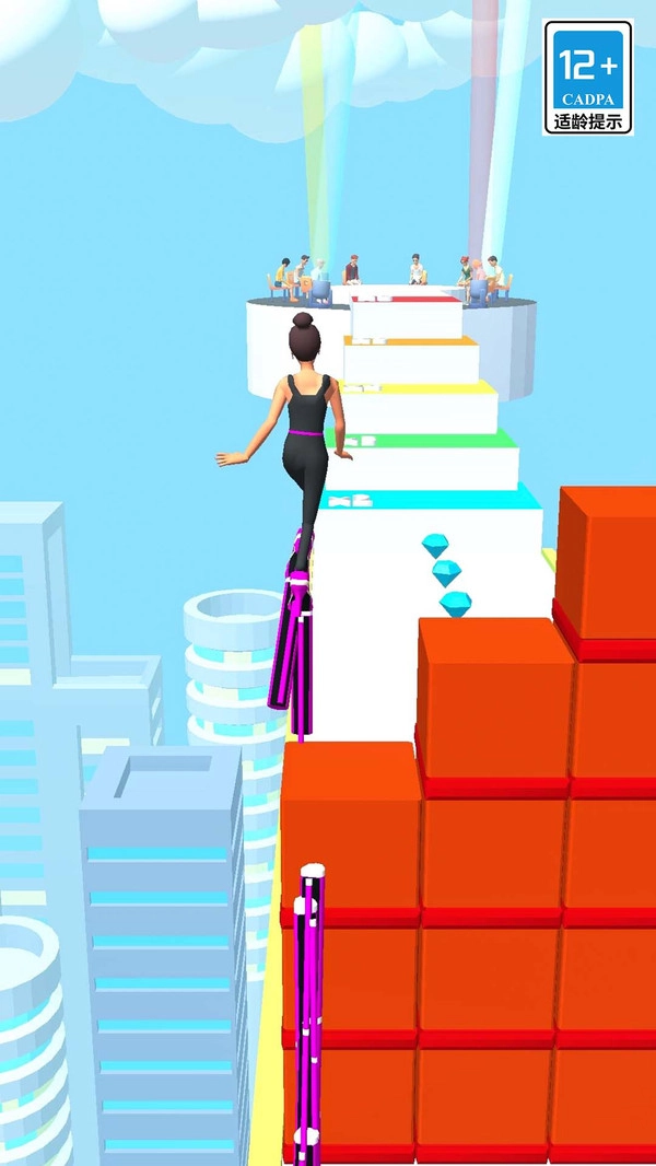 2、每获得一双高跟鞋,女主角就能踏上新的高度,越过更高的障碍物;