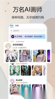 1. 拥有海量专业画师,其画风各异,能助力用户轻松匹配到最心仪的画师风格。