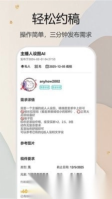 2. 注册个人账号,输入约稿的需求和想要的图稿风格并进行发布就可以,操作简单。
