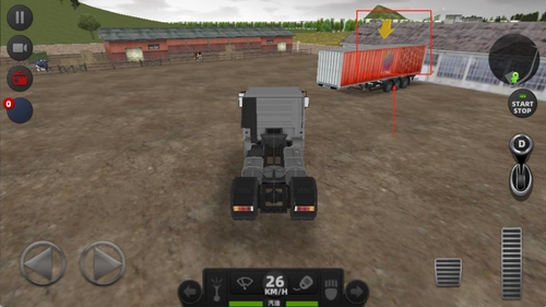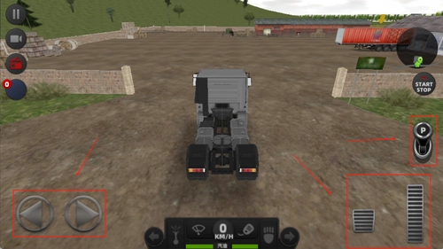 2、通过虚拟按钮控制油门刹车,长按喇叭提醒行人,切换视角观察车身周围情况确保安全行驶特别是在狭窄路段或装卸货时。
