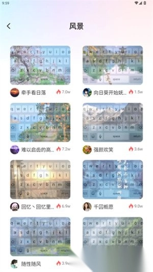 1)进入应用后,可以在主页看到多种类型的键盘风格。