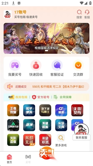 17账号作为一款专注于金钱交易的游戏交流平台,提供了丰富多样的游戏商品,涵盖《英雄联盟》《永劫无间》《王者荣耀》《穿越火线》等热门游戏。在这里,每位用户既能出售自己的账号,也能挑选心仪的游戏账号。平台十分重视交易安全,所有交易均要求用户进行真实身份认证,并签署具备法律保障的合同,全力确保交易过程万无一失。