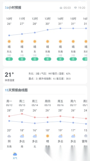 1)采用了曲线图展示每日/每小时的天气预报信息,让你一目了然就能迅速掌握核心资讯,避免眼花缭乱的情况发生。