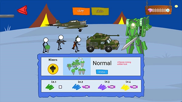 1、安装《火柴人现代全面战争》游戏,点击游戏图标进入,授予手机一定的使用权限,便可进入游戏首页。
