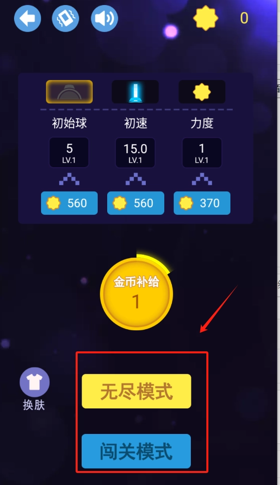 1、点击右下角红框内的无尽模式按钮,即可进入可无限畅玩的游戏模式。