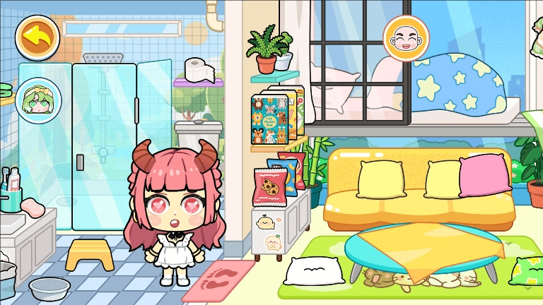 3、角色可在小镇中移动,与场景物件互动,增强休闲生活的沉浸感。