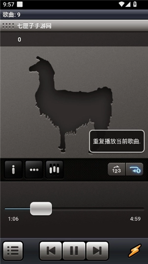 4、点击界面最右侧的循环按钮,切换到单曲循环就可以了,也就是“重复播放当前歌曲”