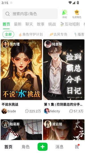 在这里,不仅有独具原创魅力的角色,还有众多你耳熟能详的角色。你既能与吸血鬼携手开启刺激冒险,也能跟随柯南一同抽丝剥茧探案解谜。要是遇到钟爱的角色,一键收藏即可,下次无需费力寻找,在收藏夹里一键就能开启相关内容。别再犹豫啦!赶快前来体验一番吧!