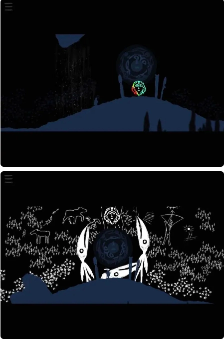 你将面对的是一段不以语言为主、以图腾、图像与音乐讲述的史诗旅程。游戏主打解谜机制与视觉表达,无明显的操作门槛,取而代之的是富有沉思意味的旅途与互动。