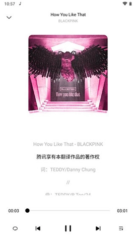 3、点击出现的播放小浮窗,进入后就能显示音乐歌词。