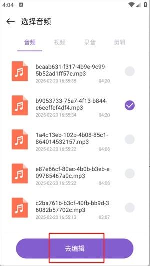 4、选摘要剪辑的音频,点击去编辑