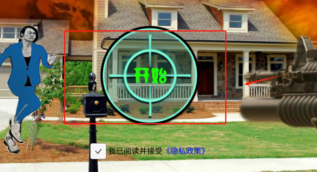 1. 点击红框内的开始按钮,勾选隐私政策,做好持枪破坏房屋的准备,游戏即将开启。