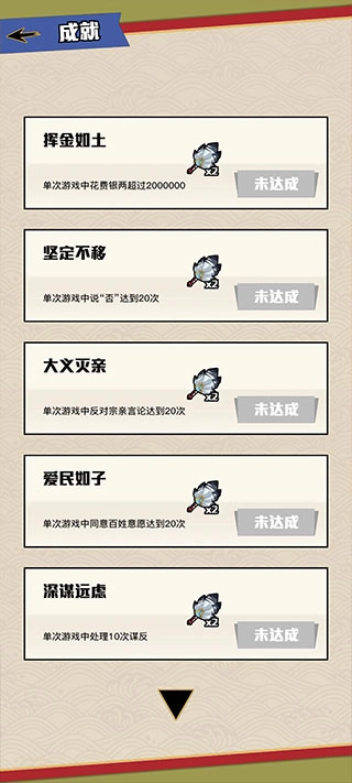 2、点击左上角按钮,进入成就页面,完成相应的成就可以获得诸葛扇子,可以在重要时刻获得提示。