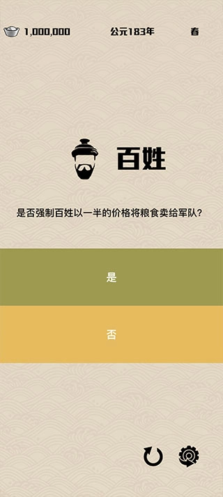 4、每个回合行动前,可以选择一个势力,处理他们相关的事件,例如“百姓”,会有相关的事件问题,需要进行选择。