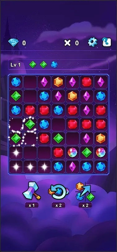 1. 轻点屏幕正中央那璀璨的水晶图标,伴随着绚丽的光芒特效,你将踏入神秘的宝石世界。