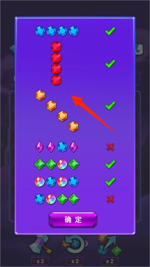 2、游戏界面会显示不同颜色的水晶组合规则,按照特定排列方式才能触发连锁反应。