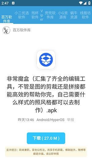 对所有上架的应用进行了全面的安全检查,保证的资源干净无毒,不含任何恶意软件,保障用户设备的安全。