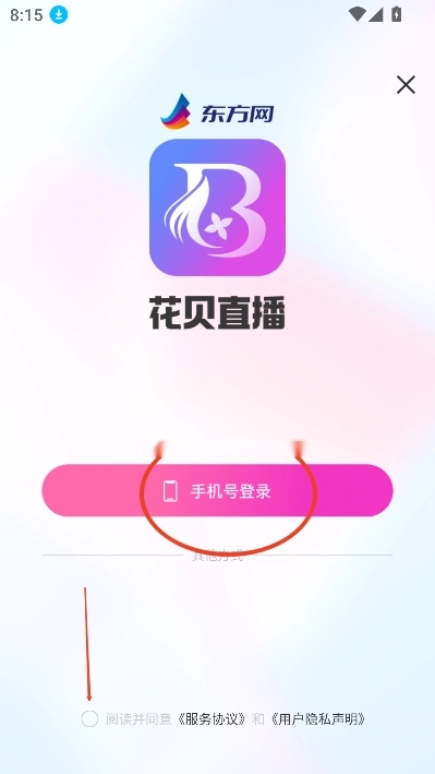 点击手机号登录,勾选隐私协议