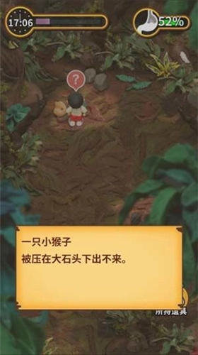 径直前往密林左上角,看到一只被石头压住的猴子,帮助猴子挪开石头。
