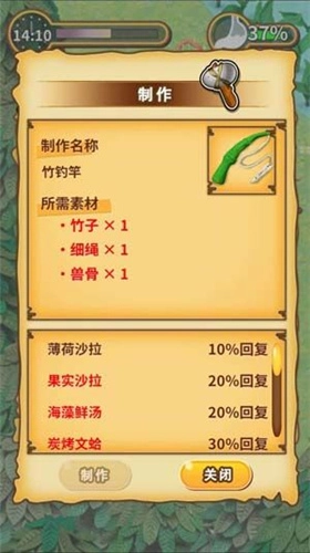如果想要坐船离开无人岛,玩家需要把古代机器人的引擎下了,然后前往湖泊区域捡一支竹子,捡三根虫网合成细绳,然后前往森林或密林区域捡一根兽骨,用竹子、细绳、兽骨合成竹钓竿