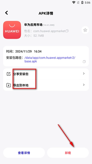 2、可以分享安装包或、导出到本地和卸载