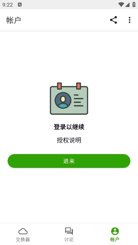 2、进入软件后点击账户栏目进入,按照软件要求登录账号