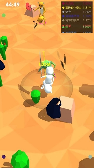 3、魔性的人物造型搭配造型各异的武器,众多角色在同一个场景地形中展开厮杀,努力生存下来,并打出尽可能多的伤害