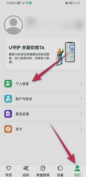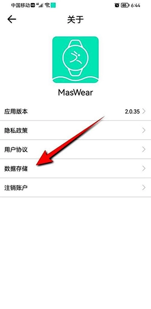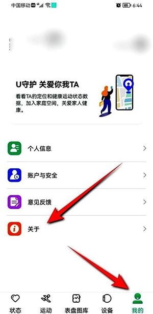 1、打开MasWear应用,点击右下角“我的”,再点击页面中的“关于”。