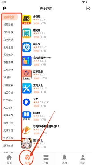 3、通过广场可以看到大家进行推送和发布的一些软件
