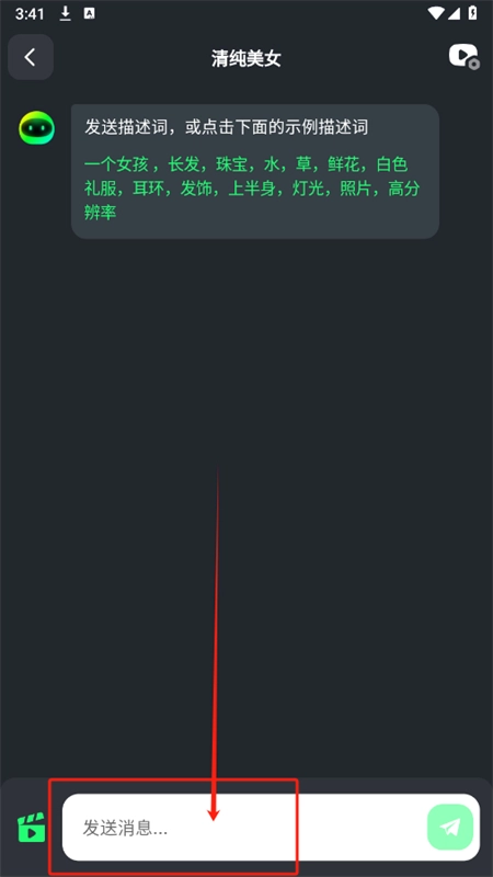 6、在艺术生成器页面,输入描述词即可快速为您生成各种绘画作品