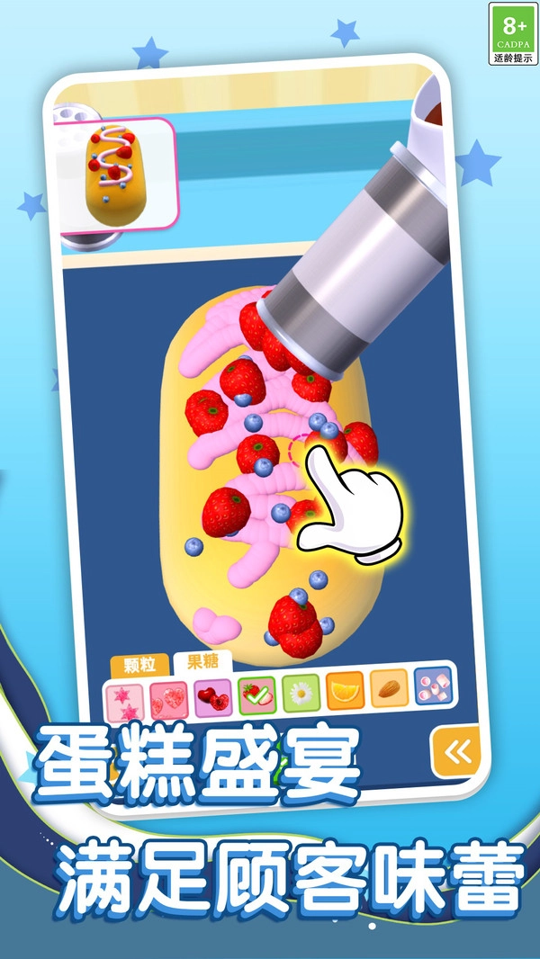1、完成制作,提交订单,顾客满意给金币,用来解锁新模具、装饰材料,拓展蛋糕种类。