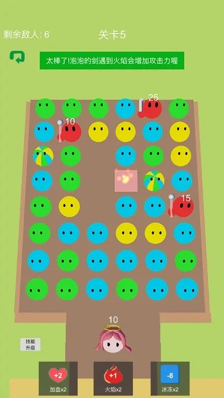 3、成功清除所有红色威胁后解救公主,后续关卡将增加移动障碍和特殊泡泡等新元素。
