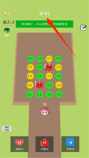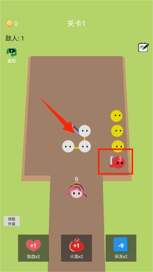 1、观察战场局势预判敌人行进路线,优先连接威胁公主的红色泡泡进行针对性清除。