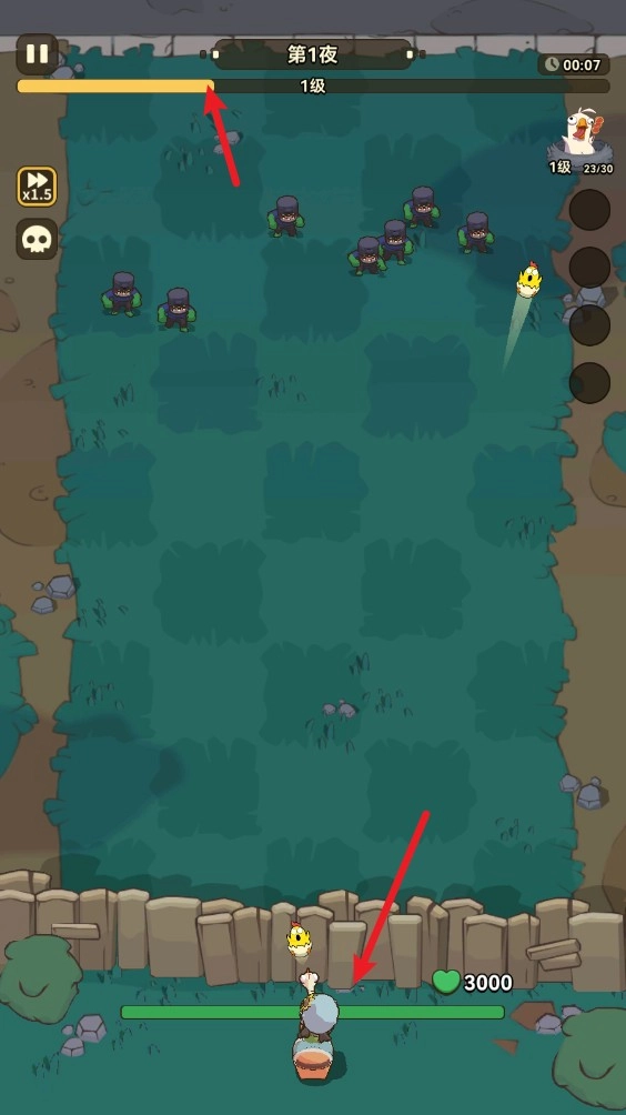 1. 游戏开始时,默认由一名角色率先发动攻击,成功消灭僵尸后可积累经验,进而逐步提升角色等级。