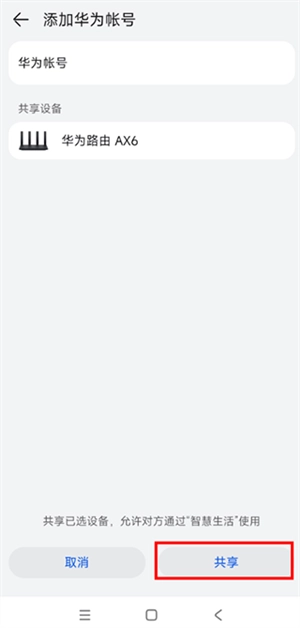 3、以通过华为帐号共享为例,点击通过华为帐号共享。