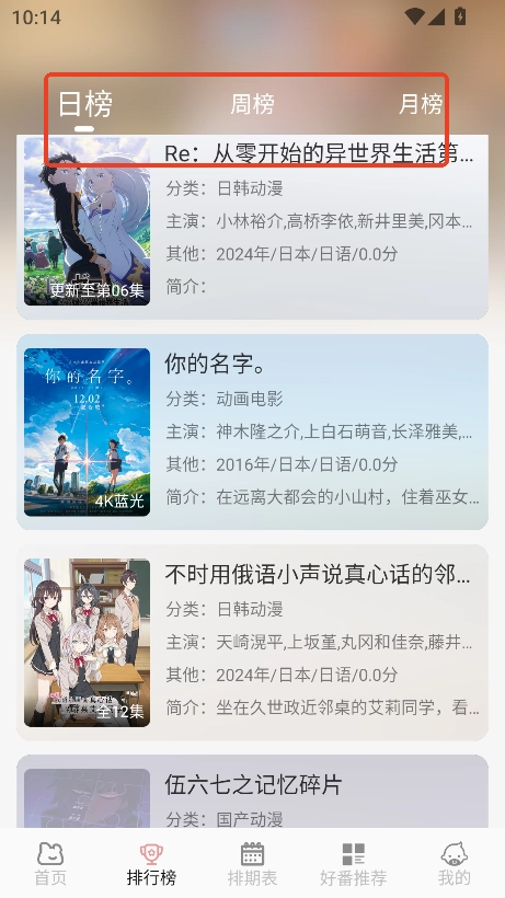 a、详细榜单,如每周最受欢迎的新番、最受好评的经典作品和人气推荐等;