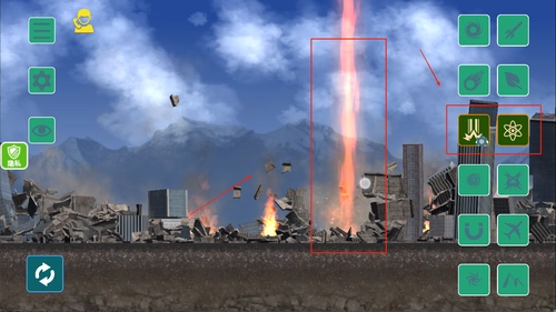 3、点击屏幕右侧工具栏选择灾害类型(如地震、核弹、龙卷风等),拖动地图视角观察整体布局并规划破坏路径。