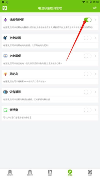 4、在发现里也可以开启提示音设置、充电动画、充电屏保、灵动岛、语音播报等功能,