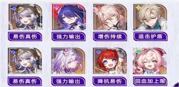 3、配队三通用选用【飞霄+赛飞儿+知更鸟+砂金】,或通用队中赛飞儿充当选辅,结合输出、辅助、生存位,凭易伤真伤特性适配输出与辅助需求。