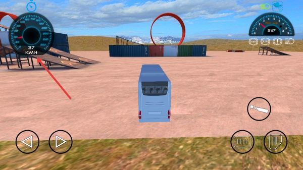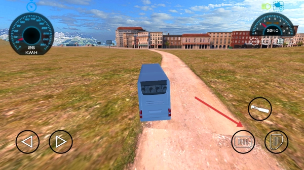 2、在乡村土路,按箭头提示用右侧道具,稳控巴士避坑。