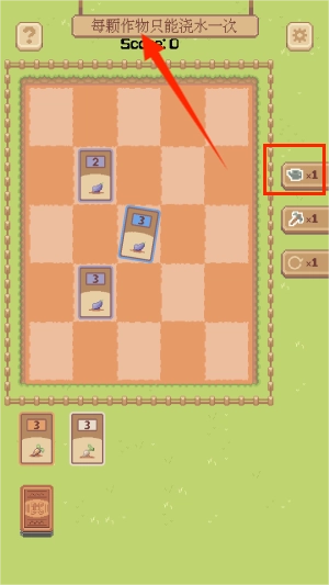 3、使用右侧水壶工具为植物补充水分,但需注意每株作物仅能接受一次灌溉,过度浇水会导致枯萎特效出现。